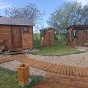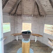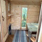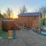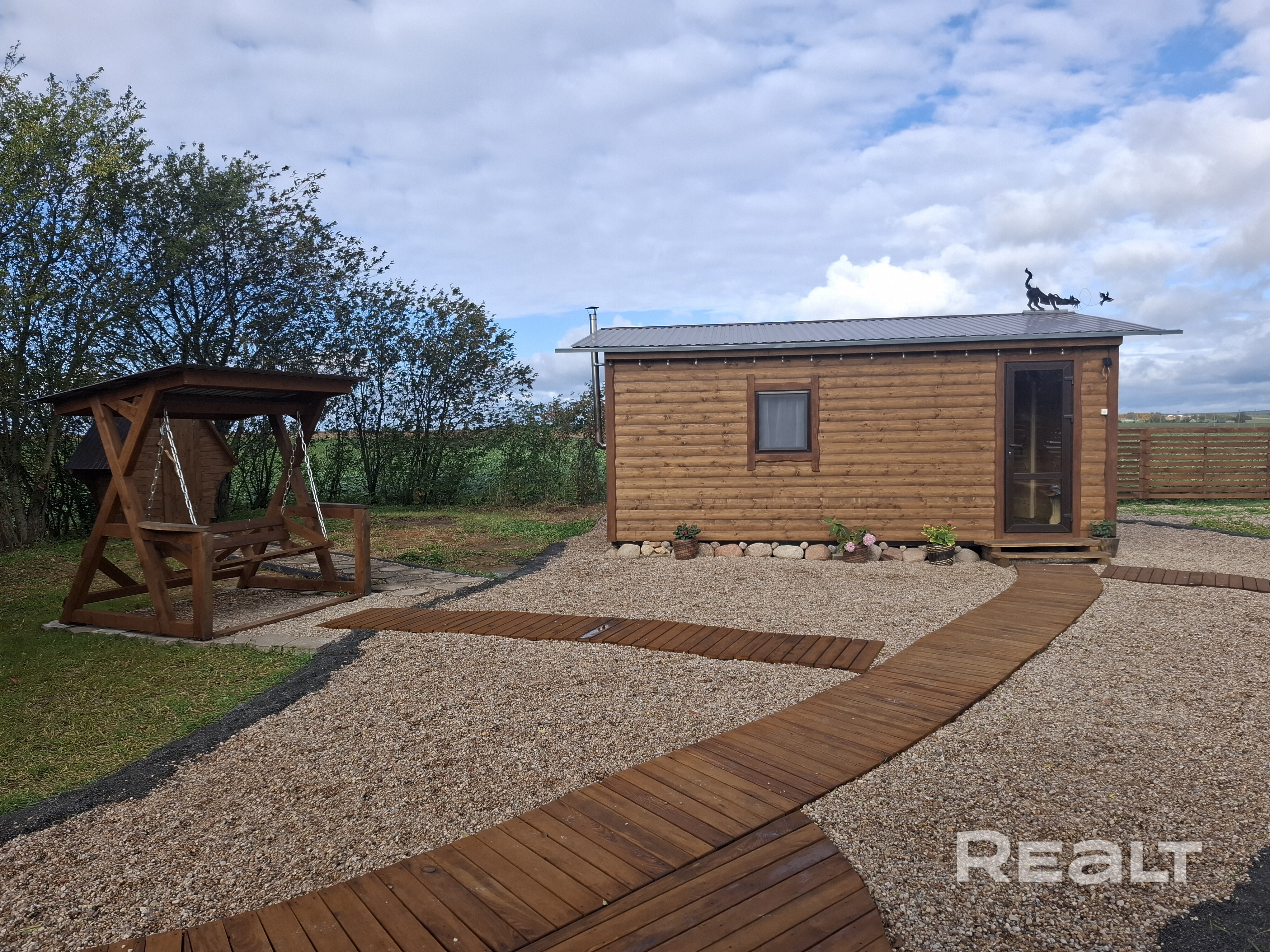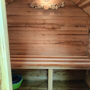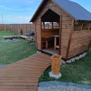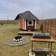 На территории есть банька, гриль-домик (в котором можно приготовить шашлык в любую погоду), холодная и горячая купель для двоих, беседка, качеля, мангал и костровая зона. Оплачивается отдельно: баня - 100руб, горячая купель - 100руб, холодная купель 40руб.