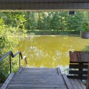 Уютный домик с баней на берегку частного водоема.