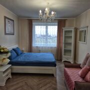 В парке. Большая, новая. Заселяем от 1- до 8 чел. Спальные места 2+2+2+1+1. Удобные и мягкие спальные места: две двуспальные кровати с ортопедическим матрасом+ двуспальный мягкий диван + мягкий полуторный диван (синий) + мягкий полуторный диван (розовый).