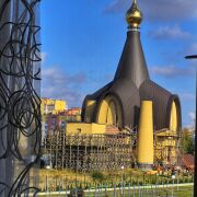 Второй этаж, вид из окон на парк и церковь с золотыми куполами.