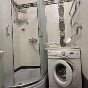 - Полностью оборудованная кухня (микроволновка, холодильник, плита , электрочайник, посуда) .