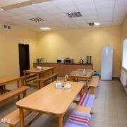 Первый этаж: производственный цех 457 м2, высота потолков 8,0 м. Двое подъемных секционных ворот, с возможностью заезда грузовых машин. Высота ворот 4,1 м, ширина 4,0 м.