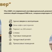 ТРЦ «СЕВЕР» это современный, многофункциональный, развлекательный комплекс общей площадью на 8 500 м2, с помещениями под: