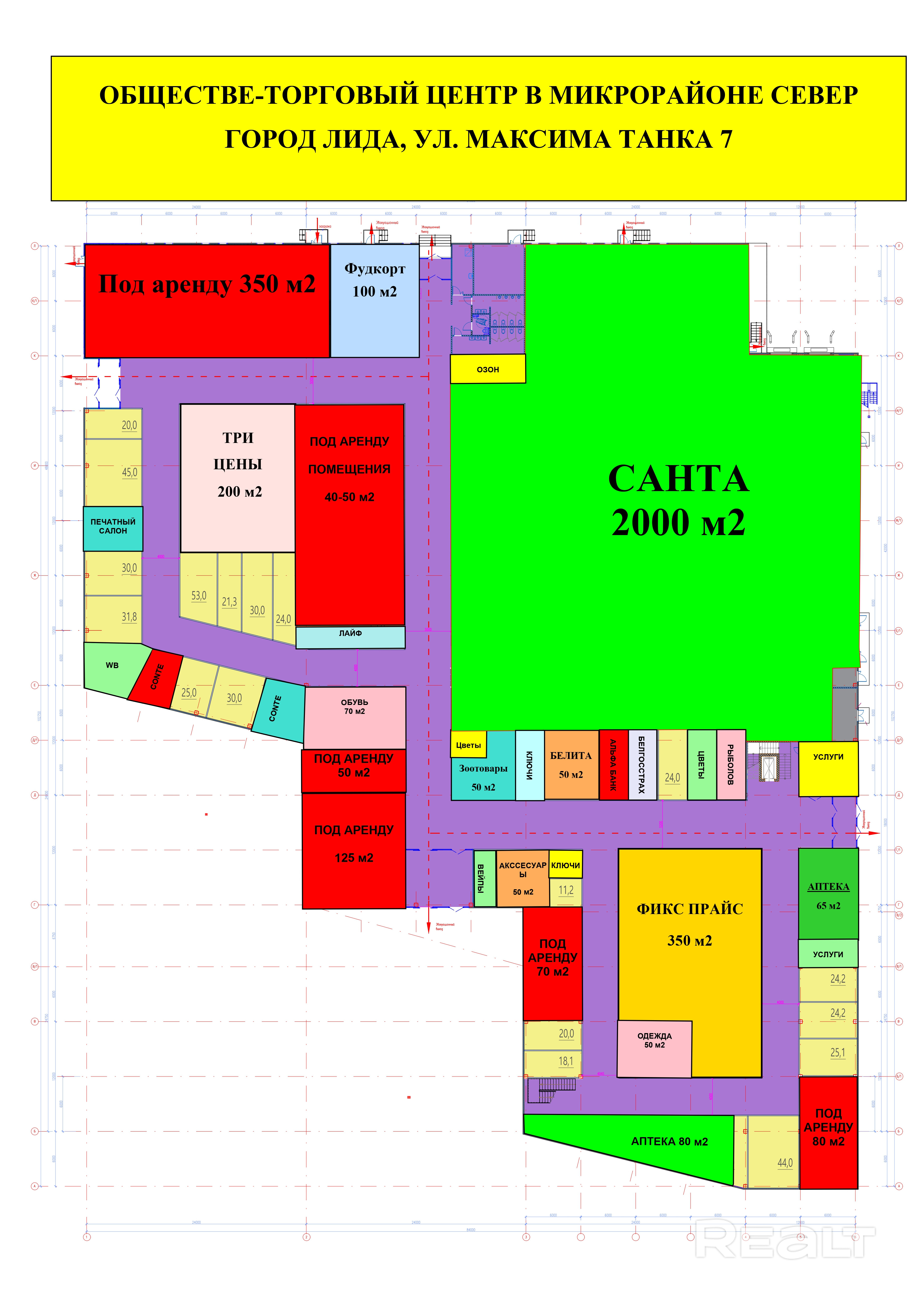 - продуктовым оператором «САНТА» - 2000 кв.м.;