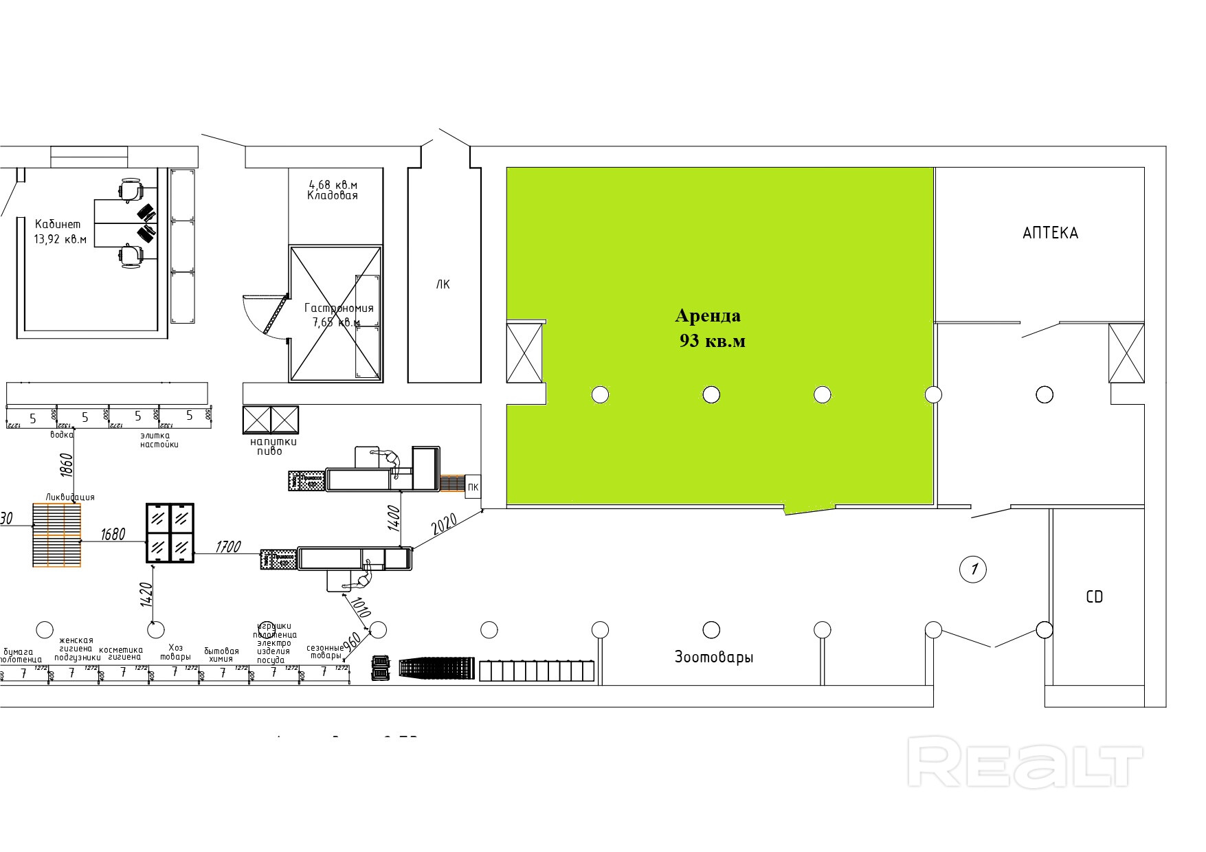 Предлагаем помещение 93 кв.м в продуктовом магазине - Копеечка. Отопление, электроснабжение, стабильный высокий трафик посетителей. Возможность разместить рекламу на фасаде. Цена и условия договорные