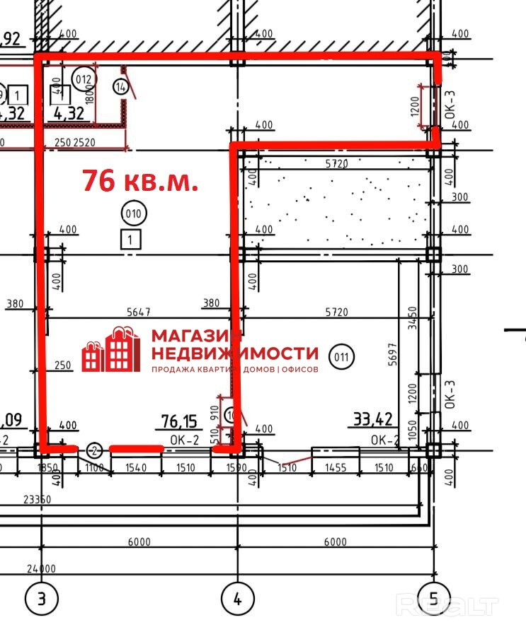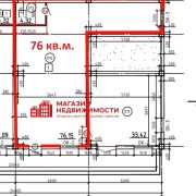 Объект находится на первом этаже, двухэтажного здания. Общая площадь помещения- 80 кв.м. В него входит кабинет площадью: 76,15 кв.м., санузел- 4,32 кв.м.