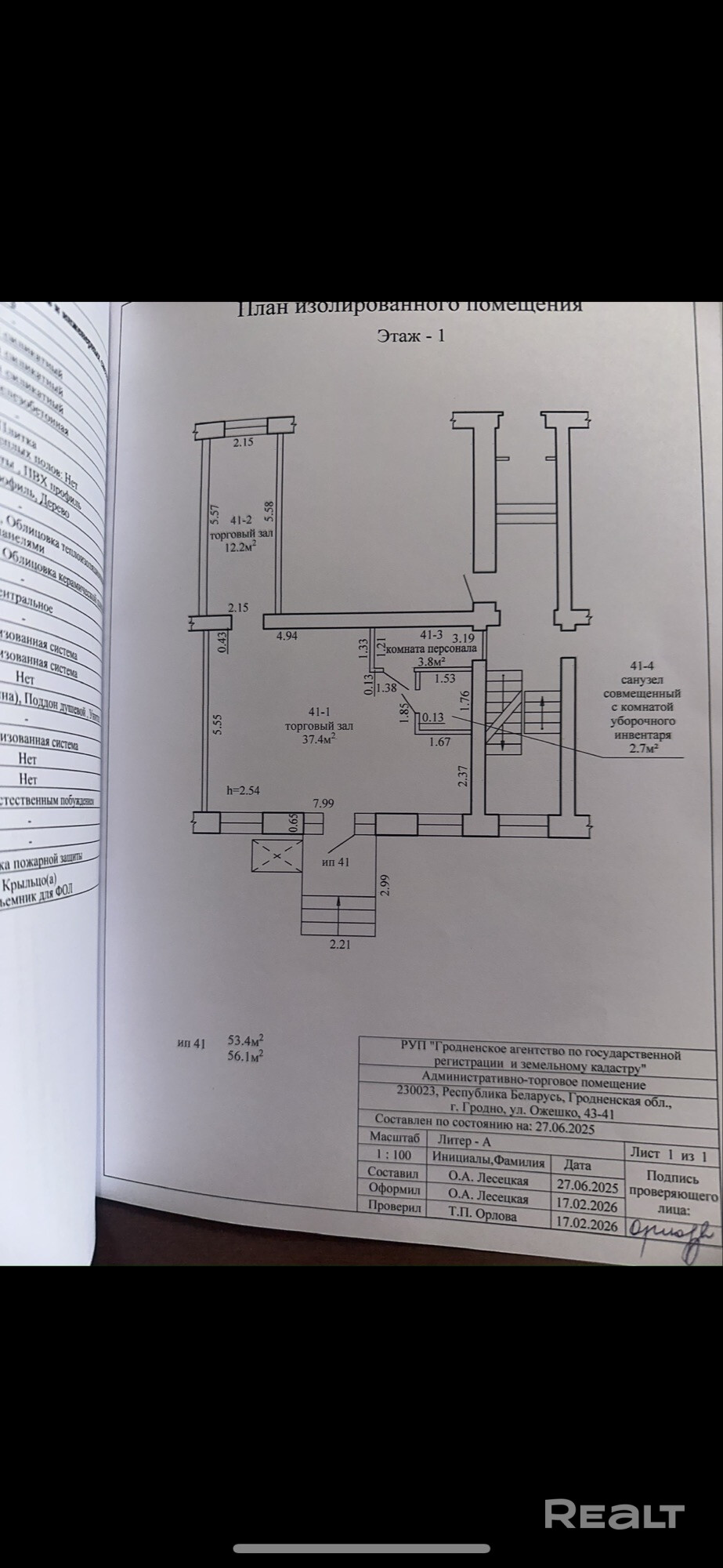 Снять торговое помещение, г. Гродно, ул. Ожешко, 43