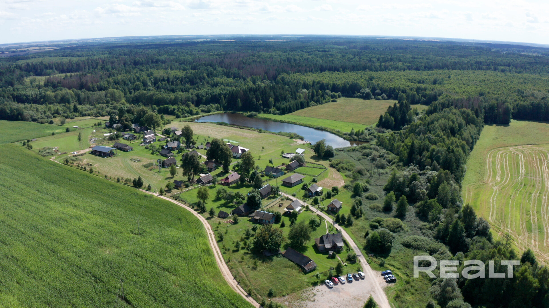 Общая площадь земли 50 га, на которых расположены: домики, корчма, пруд, зона отдыха, фермерское хозяйство, пахотные земли.
