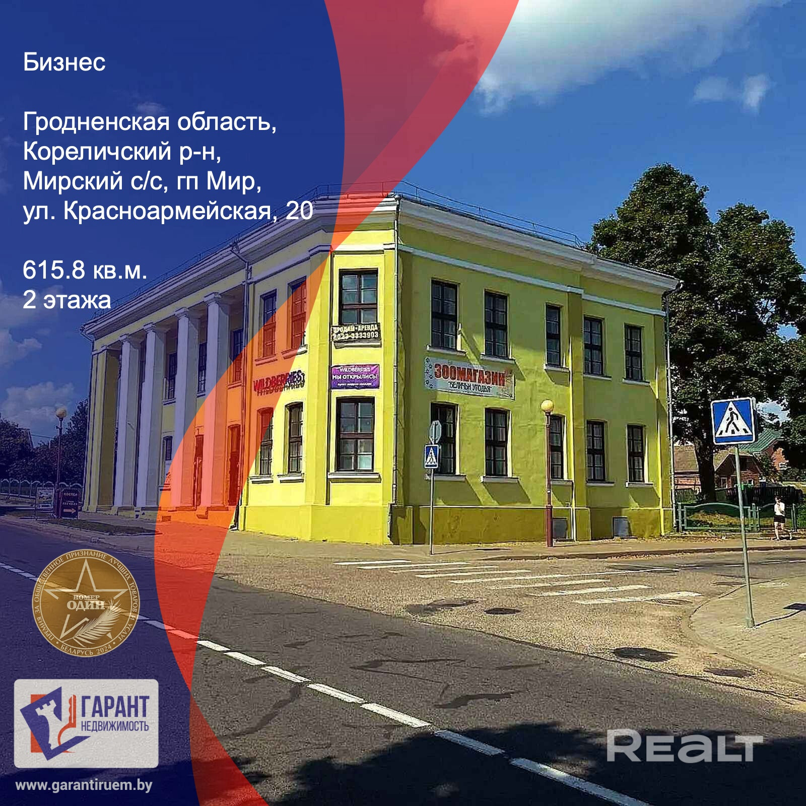Здание расположено на земельном участке площадью 0.2350 га. Общая площадь составляет 615,8 м2. Здание кирпичное, с отличным ремонтом.