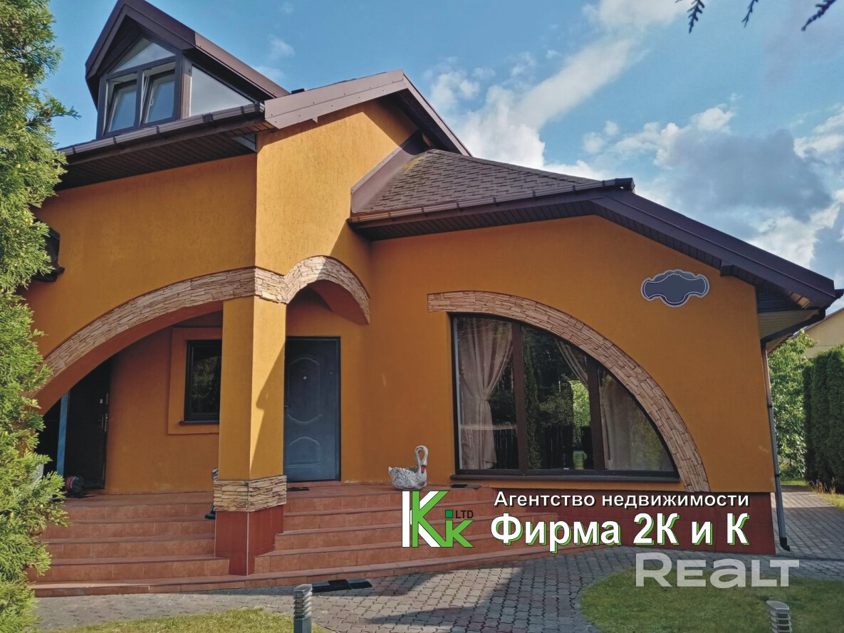 Общая площадь дома по СНБ 294,9 кв.м. (с подвалом и гаражом). До леса - 80 м, до автобусной остановки и до асфальтной дороги - 70 м.