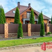 Площадь земельного участка 15 соток на праве пожизненного наследуемого владения. Площадь дома 185 кв.м. На участке расположена баня и летний бассейн, навес на два автомобиля, благоустроенный участок: зеленые насаждения с автополивом с наружи и внутри, дворовые дорожки, уличное освещение, барбекю, вольер для собаки, металлическое ограждение грядок, детская площадка т. д. Водоснабжение, канализация, газ, электричество: центральные. Газовый котел. В камине в зале встроена водяная подушка, которая подключена к отоплению. Можно без газа, с помощью камина нагреть дом. Станция на воду по очистке и смягчению воды, автономная.