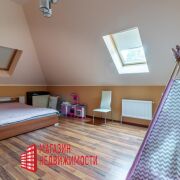 На первом этаже жилого дома расположено: гостиная площадью 24,3 кв.м., коридор – холл 16,4 кв.м., кухня площадью 17 кв.м., произведена перепланировка помещение под гараж переведено в жилое помещение площадью 22,4 кв.м., гладильная площадью 8 кв.м., топочная 3,8 кв.м. и сан узел площадью 3, кв.м. На втором мансардном этаже три жилые комнаты: площадью 28,3 кв.м, 24,6 кв.м., 22,3 кв.м., сан узел площадью 18,3 кв.м., лестница. в доме не много произведена перепланировка: гараж переоборудован в коридор со встроенными шкафами-купе, увеличена площадь кухни за счет объединения с террасой с окнами в пол до 17 кв.м. Дом продается с мебелью или по обсуждению. Отличное местоположение: асфальтированный подъезд, лесной массив с одной стороны улицы, хорошие соседи. Звоните в Магазин Недвижимости + 375 29 86 733 86, риэлтер Нина.