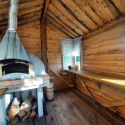 - баня (с комнатой отдыха и купелью, с санузлом, с душем, с навесом, сделана из бревен)