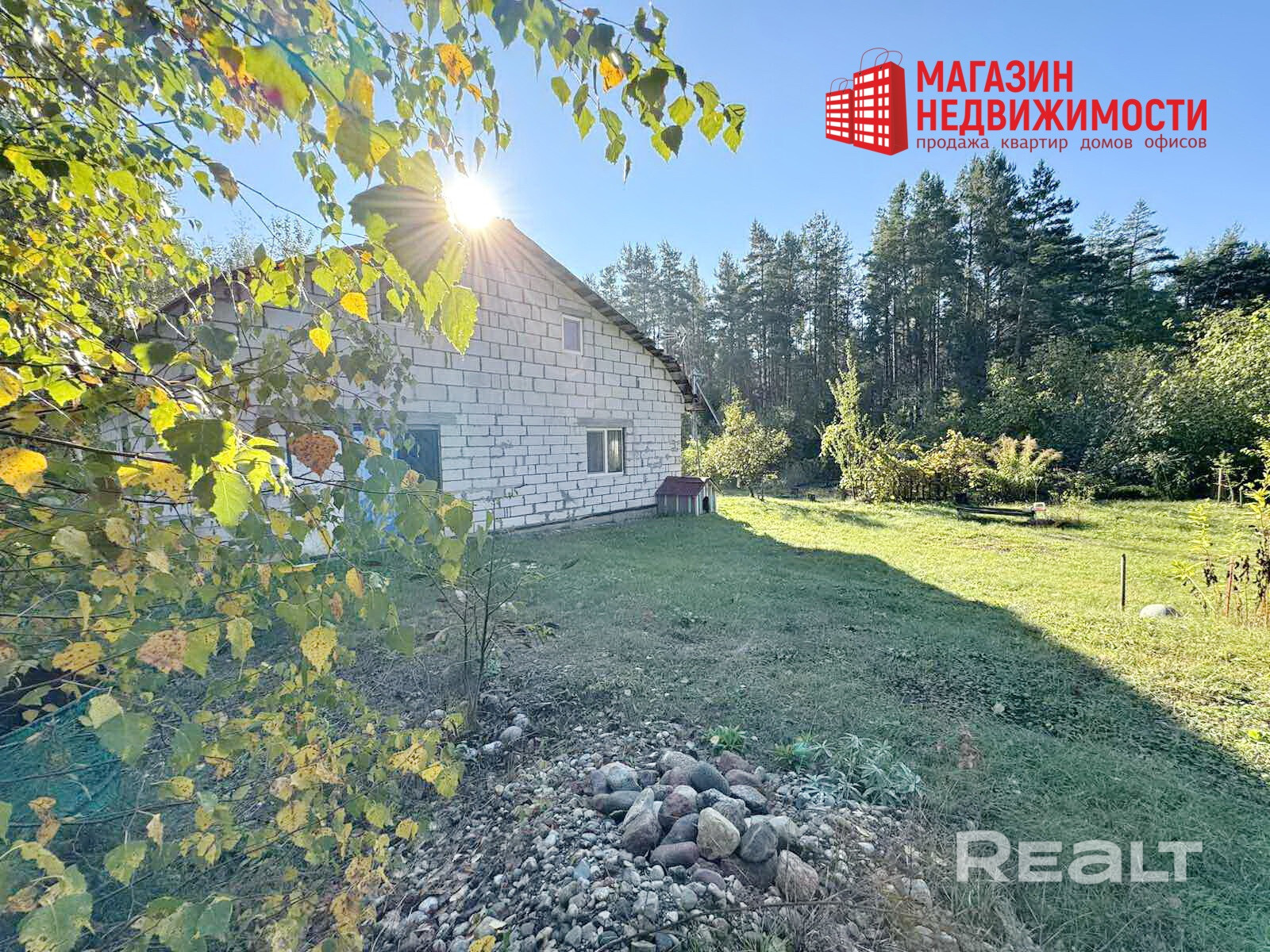 Общая площадь дома — 161,1 м2, 4. Фундамент — ленточный. Стены – блоки, перекрытие – дерево. Кровля – металлочерепица. Окна – стеклопакеты ПВХ. Отопление – печь-камин. Электричество – круглый год. Вода – скважина. К дому пристроен гараж. Канализация — местная, на 4 м3. На участке залит фундамент под беседку.
