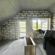 Продается незавершенный законсервированный дом в 100 метрах от живописного водоема в экологически чистом и тихом месте, рядом с аг. Озеры (1км), (от Гродно 25км). Общая площадь дома 177,9 м.кв. Готовность - 76%. Дом современной постройки, мансардного типа. Стены из газосиликатных блоков, крыша металлочерепица, окна ПВХ. Отличная планировка - три жилые комнаты, одна из которых на первом этаже. В мансарде - две жилые комнаты, с видом на озеро. Просторные террасы располагаются по периметру дома. Земельный участок - 22,8 соток на праве пожизненного наследуемого владения. Сам участок ухожен, посажен сад. Коммуникации: канализация местная - септик, электричество подведено к дому. Внутри дом без отделки.