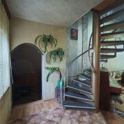 85,6 кв.м. (состоит из 5 комнат). В доме два санузла, ванная, баня. Дом