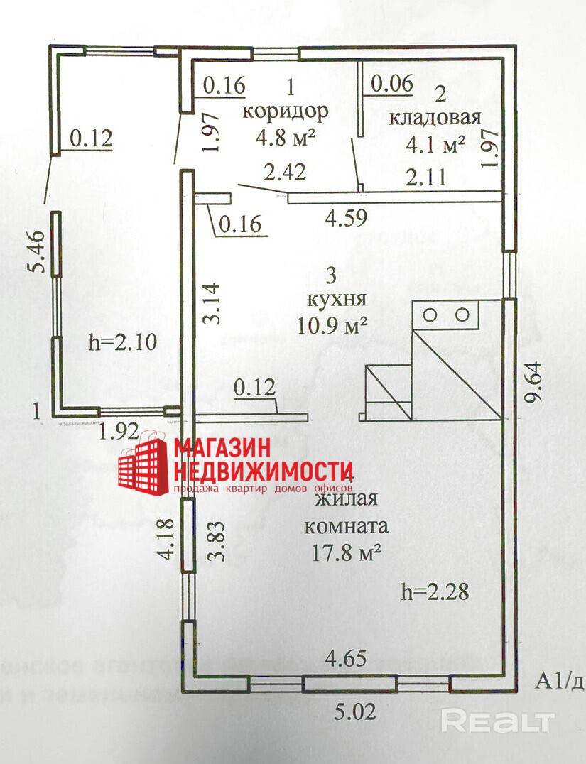 Общая информация о доме: общая площадь- 48,08 кв.м., общая площадь жилых помещений- 37,6 кв.м., кухня- 10,9 кв.м., кв.м., жилая комната- 17,8 кв.м.