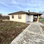 Одноэтажный дом общей площадью 90 кв.м. Внутридомовое пространство включает в себя гостиную с оборудованным камином и выходом на террасу (35 кв.м.), кухню (11 кв.м.), две жилые комнаты( 13 м2 и 10 м2), санузел и топочную. Фундамент – монолит. Стены – газосиликатный блок (40 см)+ утеплитель + финишная отделка. Крыша – гибкая черепица (утеплена). Установлены энергосберегающие стеклопакеты. Великолепный вид из окон дома на реку Котра и лес! Для отопления предусмотрен электрический котел. Канализация - местная, водоснабжение – скважина (48м), электричество 380 Вт. Все коммуникации разведены по дому. Напольное покрытие – плитка, ламинат, материал стен – декоративная штукатурка, потолки выровнены, окрашены. Установлен кухонный гарнитур из массива дерева фирмы Geos Ideal. Санузел облицован плиткой.