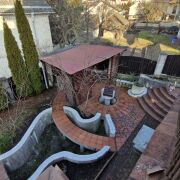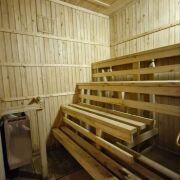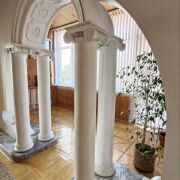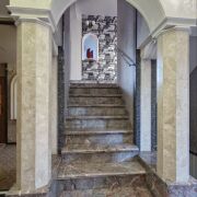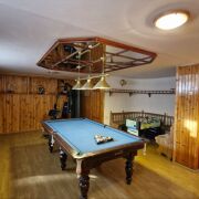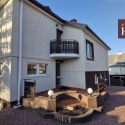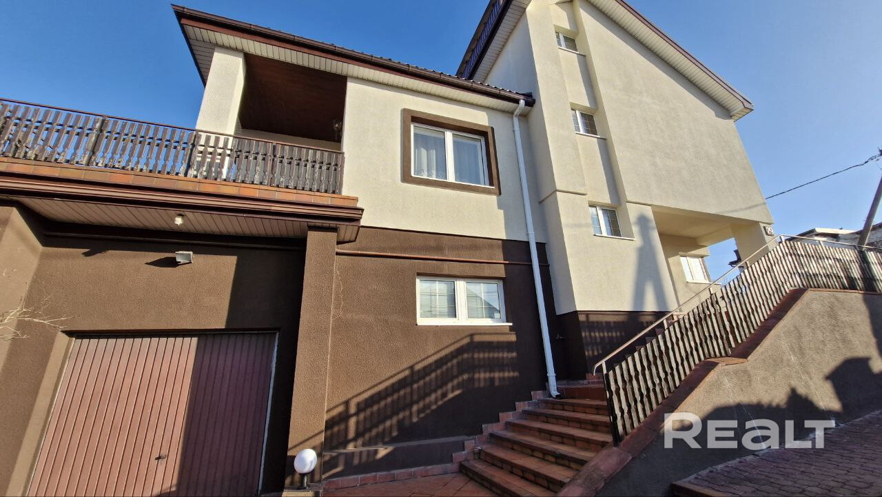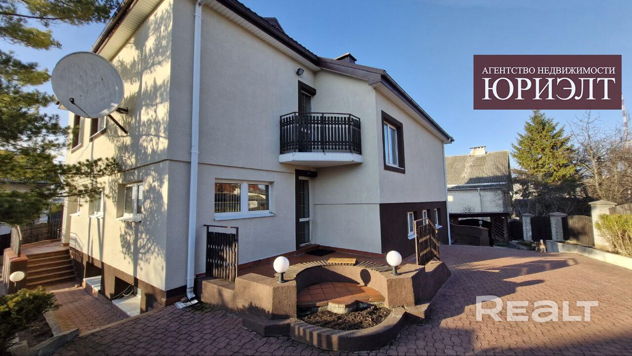 В доме имеется баня, бильярдная, гараж в подвальном помещении, три санузла, два камина, природный газ, центральная канализация, водопровод. Крыша - металлочерепица, пластиковые стеклопакеты. Участок 6,94 соток облагорожен и огорожен забором, практически прямоугольный. Земля в пожизненно наследуемом владении. Высажены туи, сосны, плодовые деревья. Двор выложен тротуарной плиткой. На участке организована зона барбекю, установлен фонтан, бассейн и беседка.
