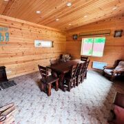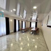 Банкетный зал вмещает до 40 человек. Напольное покрытие – керамическая плитка, потолок натяжной, на стены нанесена декоративная штукатурка, отопление электрическое от установленных батарей.