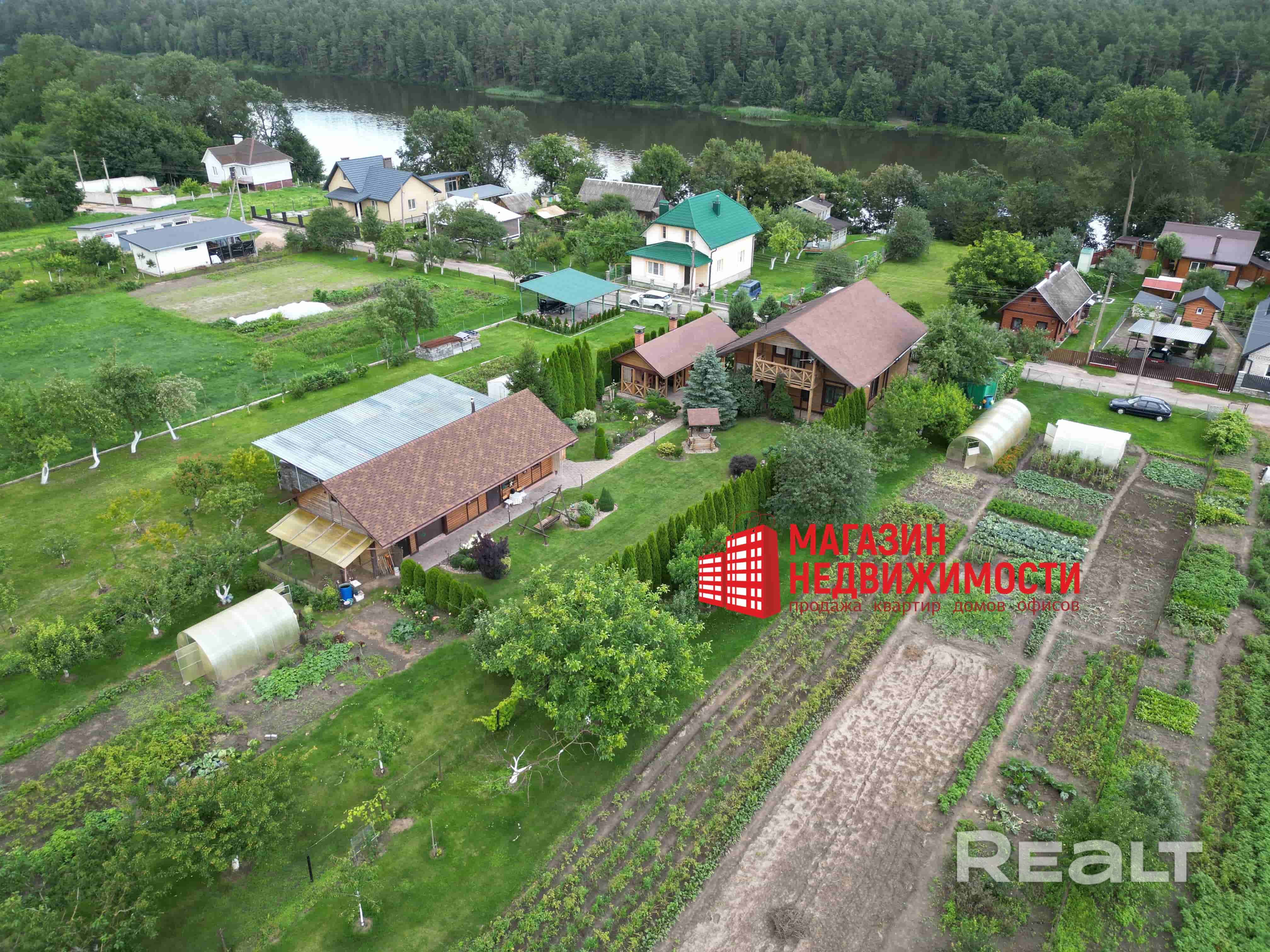 Материал стен – брус; фундамент – бетон; перекрытия и перегородки – деревянные; пол – доска, в санузле – керамическая плитка; стены – евровагонка; лестница – деревянная; крыша – шинглас. Высота потолка первого этажа – 2,8 м., мансардного – 2,54 м. Освещение – потолочное и навесное. Окна – энергосберегающие стеклопакеты. Входная дверь металлическая, межкомнатные – массив. Въезд на парковку оборудован откатными воротами с электроприводом. Установлено видеонаблюдение. Выход на воду с оборудованного пирса.