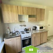 Ремонт квартиры выполнен практично и с душой. По всей площади пола залита стяжка, в комнате положен ламинат, в коридоре и санузел плитка. Стены утеплены и выровнены гипсокартоном. Все окна заменены на ПВХ стеклопакеты. Межкомнатные современные двери из массива.