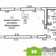 Просторную комнату отделяет от зоны кухни камин с печью. На кухне имеются шкафчики для удобного приготовления пищи с мойкой и электроплитой. Одним из главных преимуществ этой квартиры является просторный совмещённый санузел с отделкой из современной керамической плитки. В прихожей установлен вместительный шкаф-купе, в котором спрятан распределительный электрощиток и выключатель автоматической подачи воды из скважины.