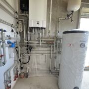 На первом этаже, предполагается гостиная с кухонным оборудованием, спальня, ванная комната с санузлом; имеется два выхода на террасу из кухни/гостиной, стены – блок 40 см, высота потолков 3 м2, дом утеплен, оштукатурен, окна ПВХ 4-х камерные пр-во РП, кровля фальцевая, вода-колодец на 8 колец, газ-центральный, в доме установлены радиаторы, теплые полы, установлен газовый котел DE Dietrich, бойлер, фильтры и т.п., все строительные материалы, система отопления и т.п. премиум класса, строили качественно для себя, световое решение выполнено по дизайн проекту, все продумано до мелочей, высокие потолки и большие панорамные окна обеспечивают полноту естественного освещения и простор, обустроен камин. Имеется большой гараж с секционными воротами, которые создают оптимальные условия для шумо- и теплоизоляции помещения. На 1/4 дома второй свет, что означает отсутствие потолочного перекрытия части гостиной, что создает высокое и просторное помещение, наполненное светом.