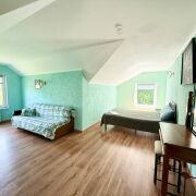 Общая площадь 138,1/ жилая 76,4/ кухня 34 м/кв, состоит из 5 комнат: 3 на первом этаже, 2 на втором и в цоколе бильярд, котельная, гостиная совмещенная с кухней и выходом на большую террасу.