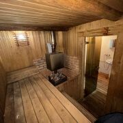 В бане есть вода и бойлер для горячей воды на 80 литров.