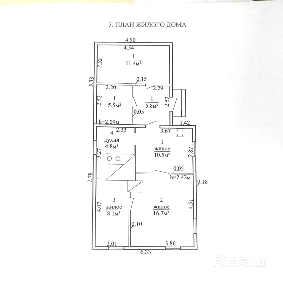 В доме три жилые комнаты, кухня, веранда, подсобные помещения.