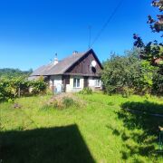 Дом одноэтажный бревенчатый, перекрытия деревянные, крыша – шифер. Установлены стеклопакеты, пол – ламинат, ДСП. Есть погреб. Отопление печное (две печки). Общая площадь квартиры 46 м.кв., состоит из двух комнат, кухни, коридора. Коммуникации центральные: электричество разведено по дому, вода холодная введена в дом, газ – по участку, канализация – по улице. Земельный участок 5 соток огорожен со всех сторон. Вход отдельный от соседей.