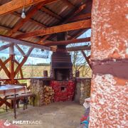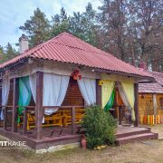 1) Отдельный дом общей площадью 82,1 кв.м с большой открытой террасой, баней, гостиной с камином, кухней, обустроенным санузлом, с возможностью проживания до 10 человек.