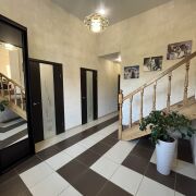 Дом с современным ремонтом в светлых тонах, мебелью и бытовой техникой. - Отопление от газового котла - Центральное водоснабжение - Канализация "септик" - Интернет оптоволокно - Два гаража с электричеством 380 вольт - Помещение под баню - Подвал Ухоженный участок 15 соток с газоном, декоративными хвойниками, плодовыми деревьями, небольшим огородом. Территория обнесена аккуратным забором с воротами, выложенна плитка, обустроена зона отдыха с качелями, детским батутом, есть бассейн.