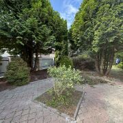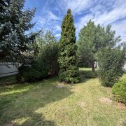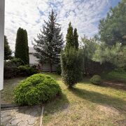 Участок ровный, сделан ландшафтный дизайн, много декоративных растений, кустов, хвойных и плодовых деревьев. По всему периметру огорожен забором. На участке есть большой гараж с ямой.