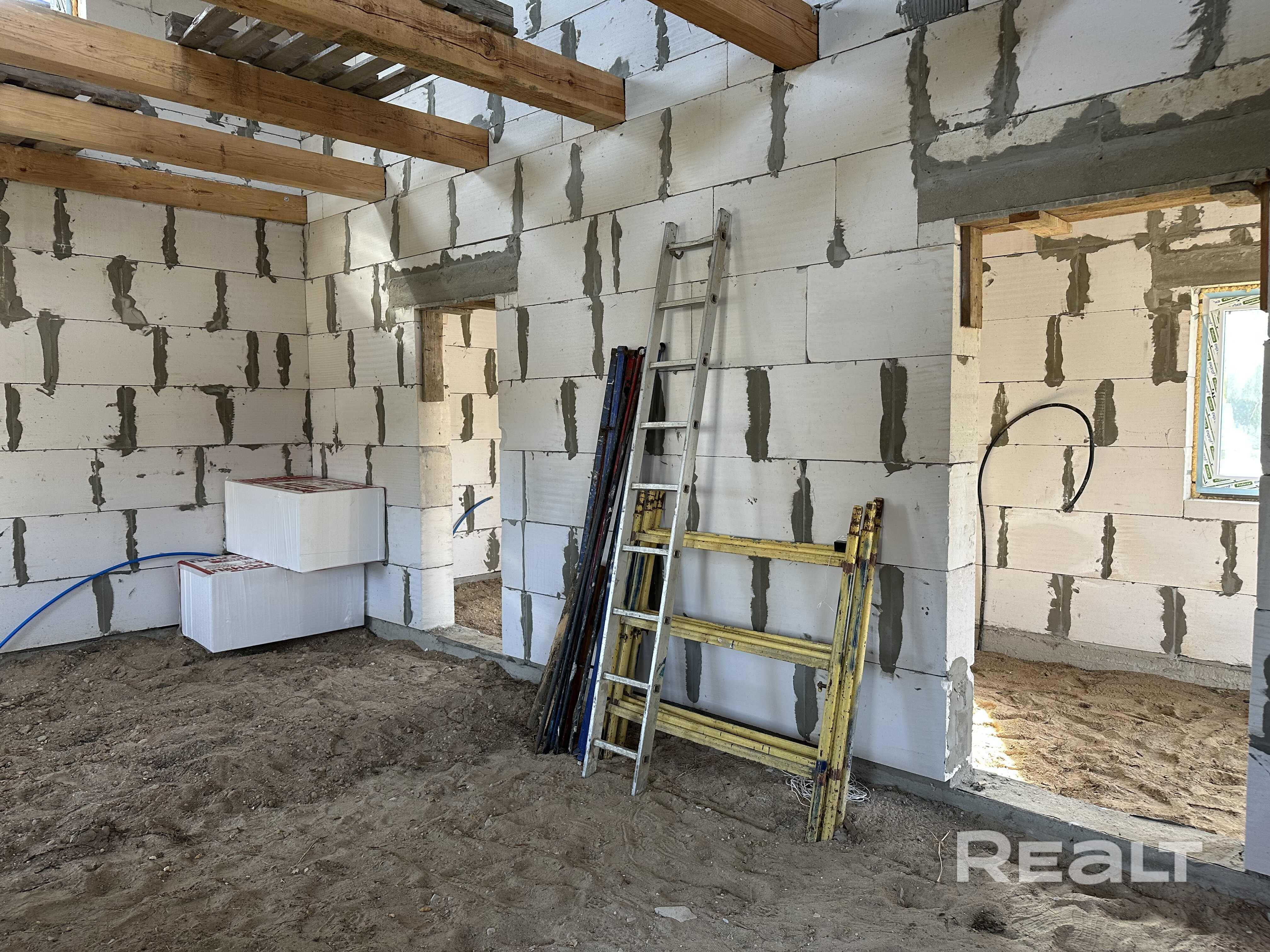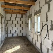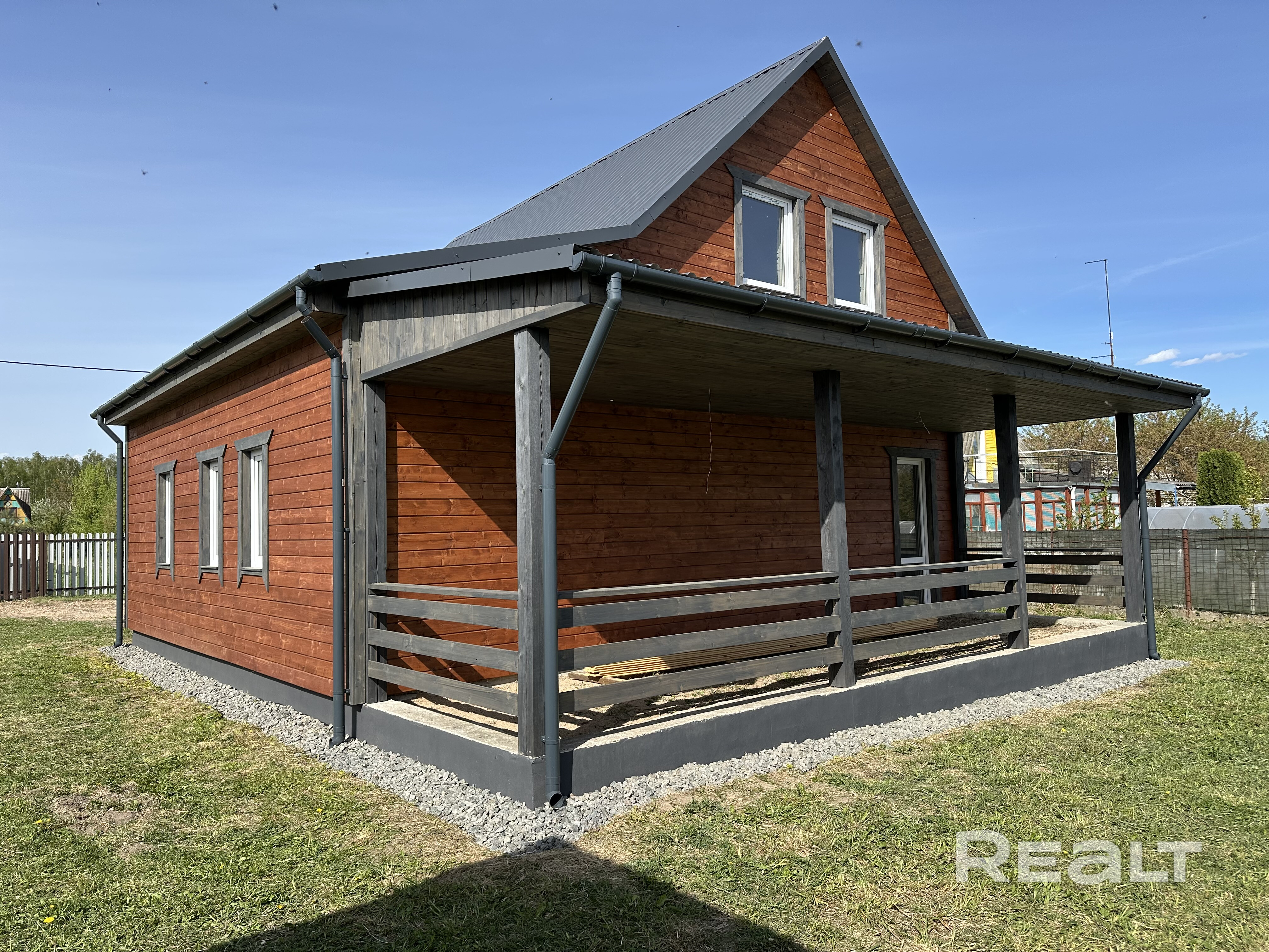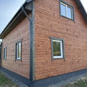Дом на дачном участке в с\т «Берёзовое». Блочный, стены 250 мм, утеплён пенопластом 50 мм, обшит имитацией бруса, окрашен. Фундамент ленточный, стеклопакеты двухкамерные. Электричество заведено в дом, внутри дома смонтированы трубы канализации, труба для подачи воды заведена в дом. Участок полностью огорожен. Рядом река Неман. До города 12 км. Без внутренних отделочных работ.