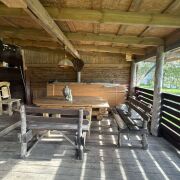 Дом из сруба, крыша - шифер , окна ПВХ , пригоден для проживания . В доме имеется отличная терраса , есть погреб . На участке есть все необходимое: баня , сарай, уборная, теплица . Есть отличная зона для отдыха. Рядом с участком протекает река Котра.