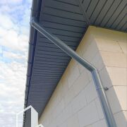 Толщина стен — 40 см для отличной теплоизоляции. Окна с ламинацией для стильного внешнего вида. Крыша — металлопрофиль, подшита для долговечности. Водосток пластик.