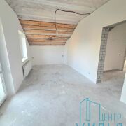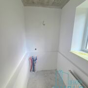 Хорошая современная планировка, состоит из пяти комнат, на двух уровнях. На каждом этаже санузел, на первом этаже душ, на втором ванна. Сантехника есть в наличии, но не установлена снаружи, только в стенах. На второй этаж, в ванную, куплено большое мансардное окно.