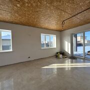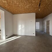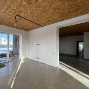 Стены поштукатурены и подготовлены под покраску . Лежит теплый пол ( везде , кроме жилых комнат). В спальнях – итальянские радиаторы. В доме 3 жилых комнаты , гостиная совмещенная с кухней и выходом на террасу ,большой хол, два санузла. Есть 2 террасы : с лицевой стороны и за домом .