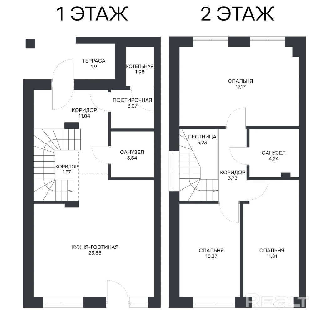2-уровневая квартира в таунхаусе на 2 квартиры