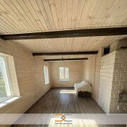 В комнатах отделка деревом и покраска стен и потолков. В кухне стены и потолок обшиты гипсокартоном. В санузле на полу и стенах плитка.