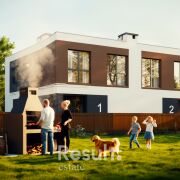 Своя благоустроенная уже огороженная зеленая территория, с возможностью высаживать растения и жарить барбекю.