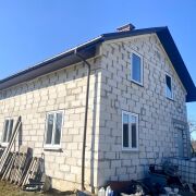 - Дом сложен из газосиликатного блока, кровля – качественная металлочерепица. Окна ПВХ. Канализация местная, объемная, с переливом. В доме разведена вся электрика, сантехника и система отопления. Для отопления дома установлен новый котел на твердом топливе, есть возможность ввода газа в дом (проходит в непосредственной близости от участка). Для нагрева воды – электрический бойлер. Удобный проект дома. Два входа.