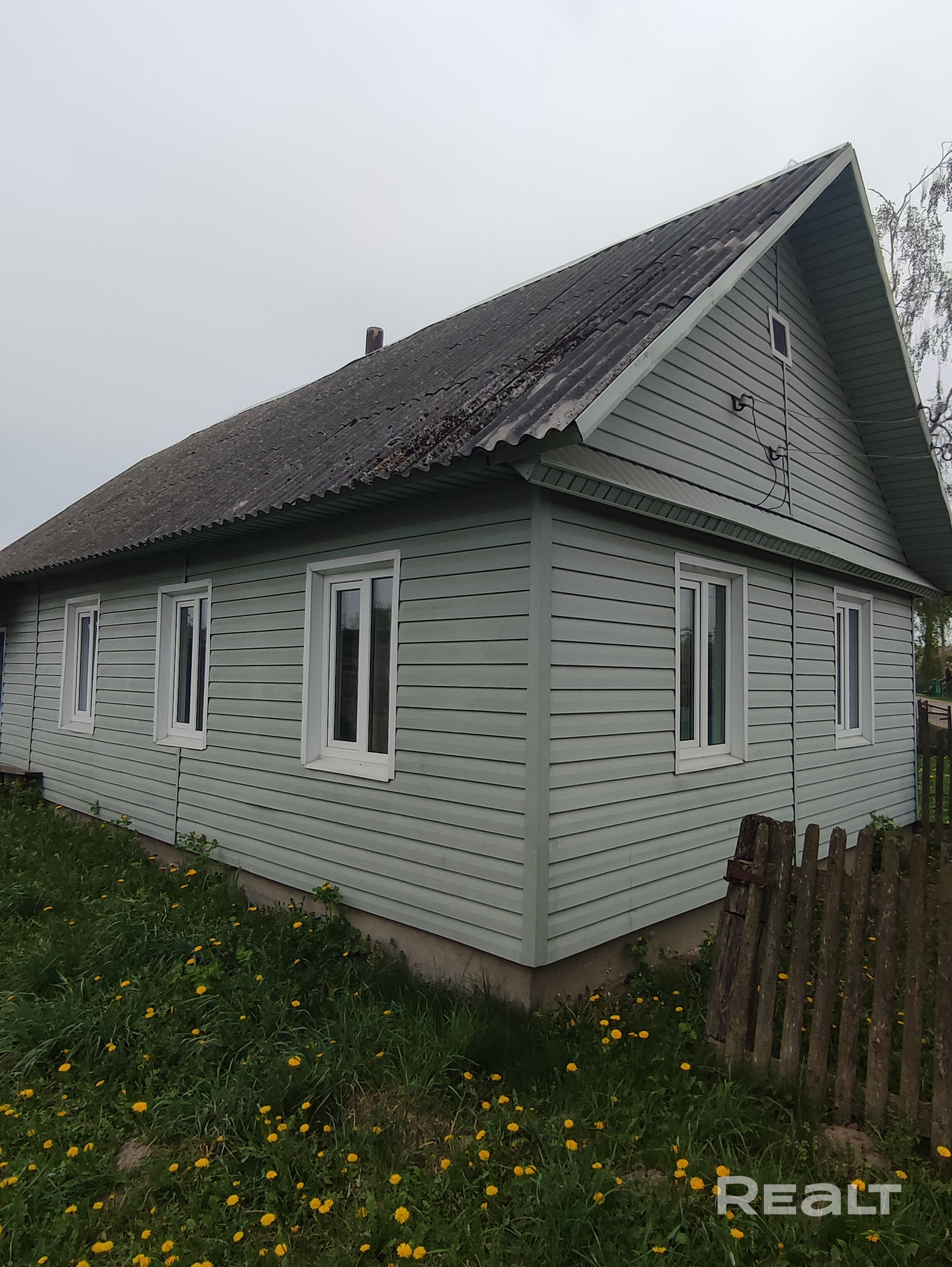 Добротный одноэтажный деревянный дом (сруб) в хорошем состоянии с печным отоплением. Наружные стены обшиты сайдингом, крыша - шифер, окна – ПВХ. В доме оборудована кладовая, проведено электричество. Земельный участок 19 соток на праве пожизненно наследуемого владения. На участке расположены хозяйственные постройки: сарай, гараж, погреб. Есть колодец. Участок огорожен забором. Хороший асфальтированный подъезд прямо к дому. В деревне есть магазин. Дом расположен в экологически чистом месте.