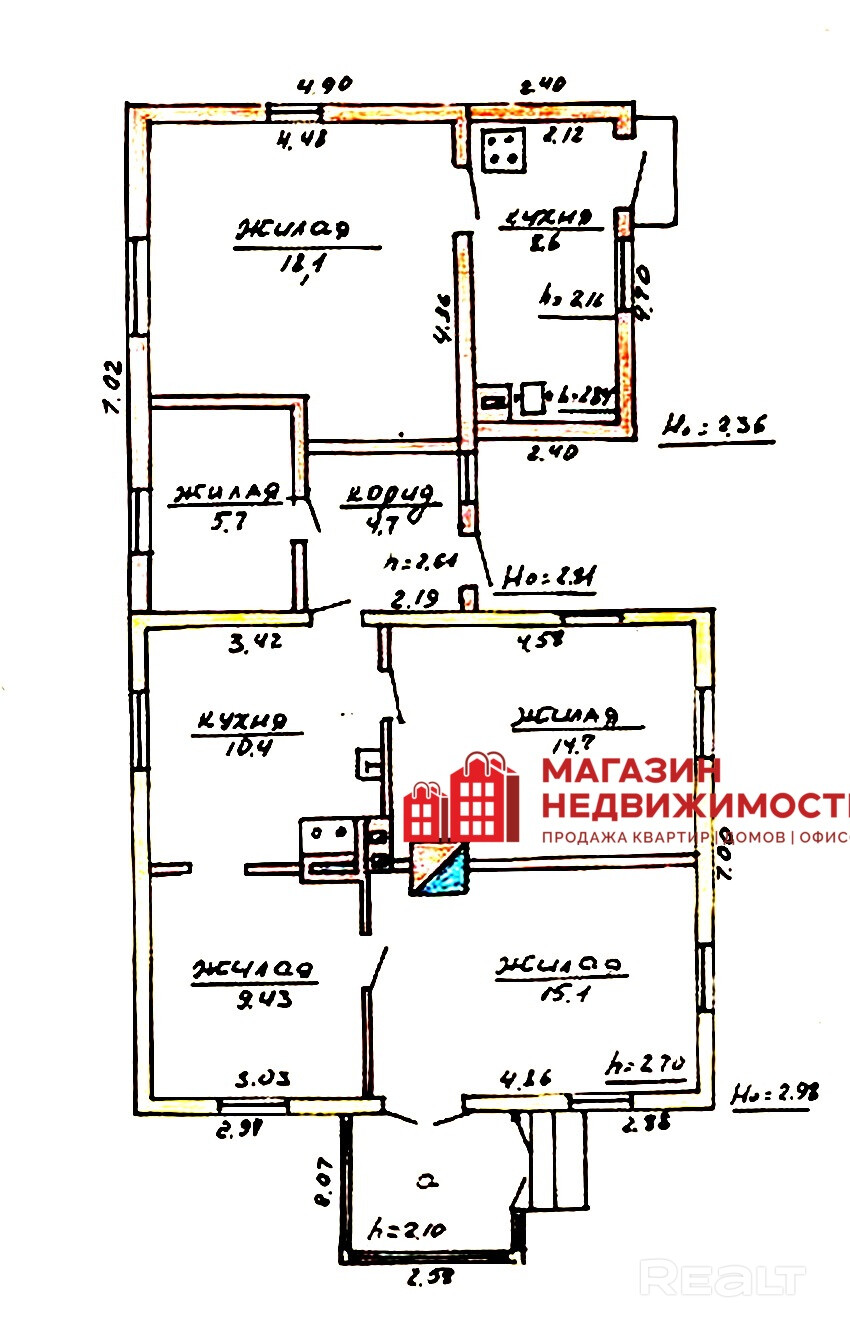 Дом с тремя отдельными входами, имеет внутреннее планирование — 5 комнат, 2 кухни, веранда, погреб.