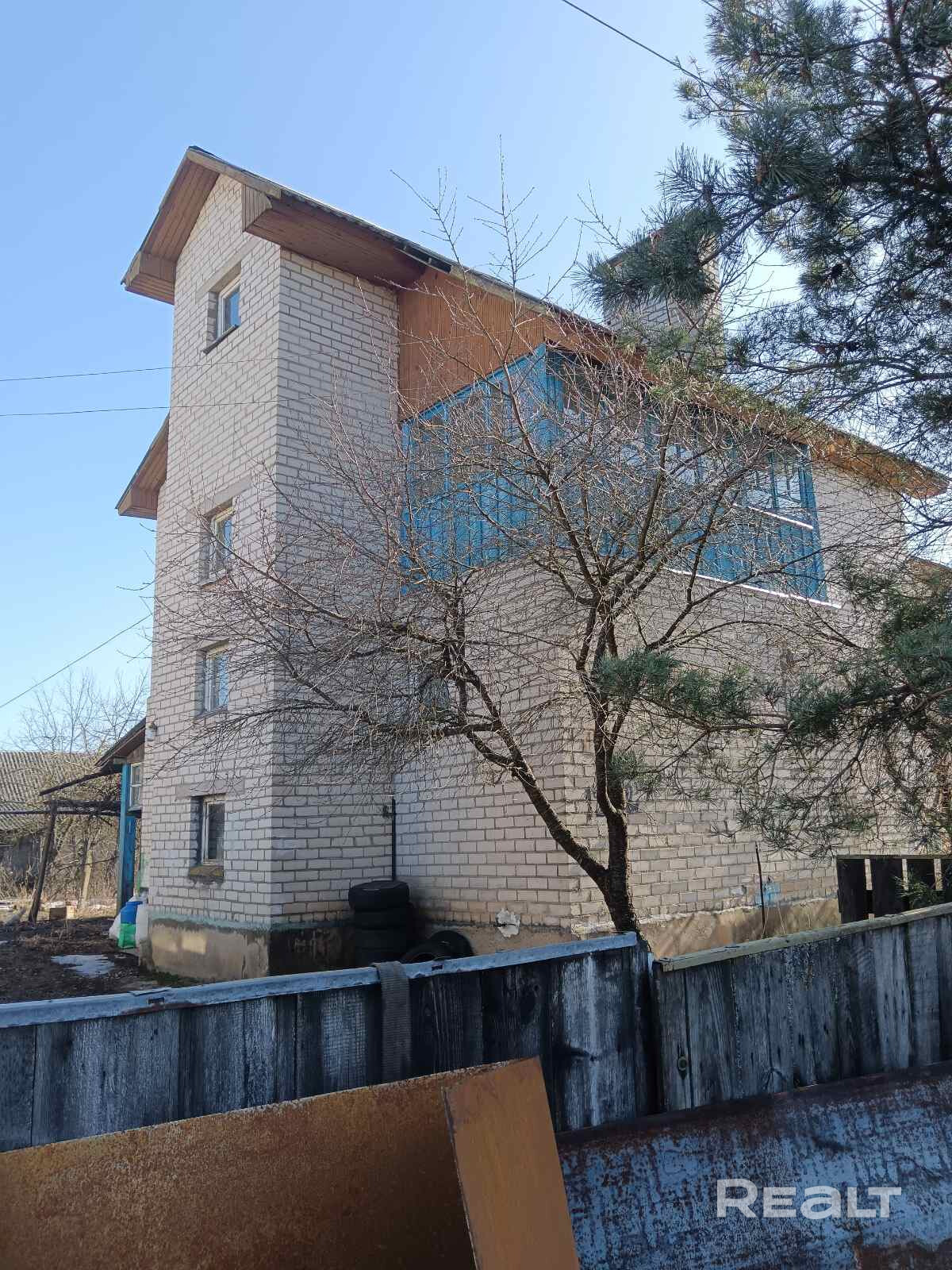 Частный 2-этажный дом, с подвалом. На первом этаже кухня, комната, ванная - туалет, котельная, кладовая, выход в подвал. Подведён природный газ. Второй этаж : 3 комнаты, туалет, балкон, выход на чердак. Дом очень тёплый, установлены стеклопакеты во всём доме. Удобно, что 2 сан.узла. На территории сарай. Центр колхоза (выкупила фирма Конте), рядом озеро, лес, 2 мазагина, школа, сад, амбулатория, церковь.