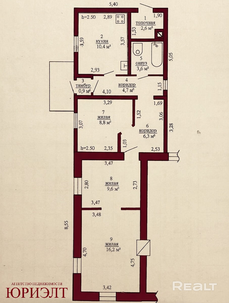 🔹 Площадь квартиры: 63,1 кв.м., кухня 10,4кв.м.