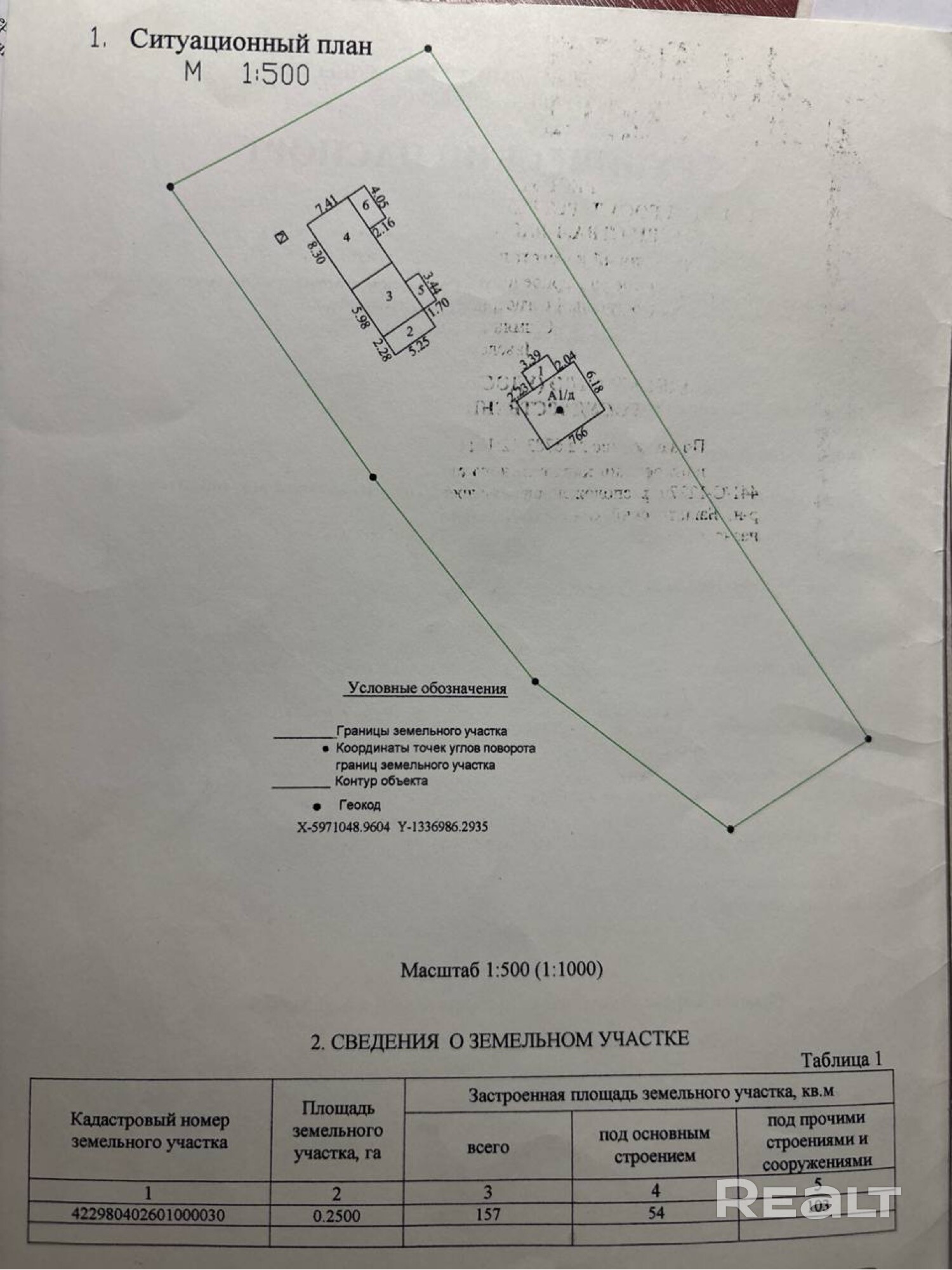 - Площадь участка