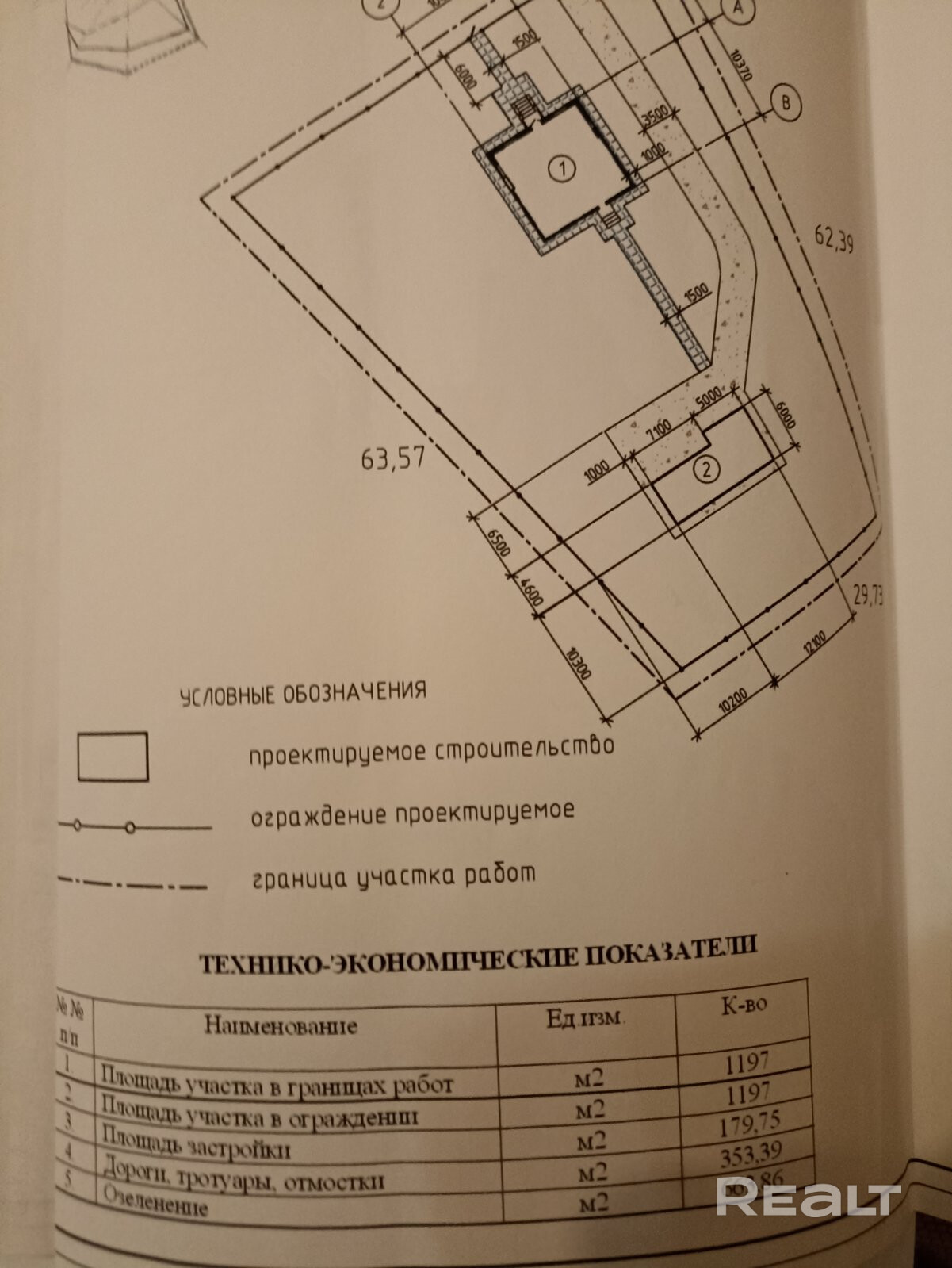 - Площадь участка
